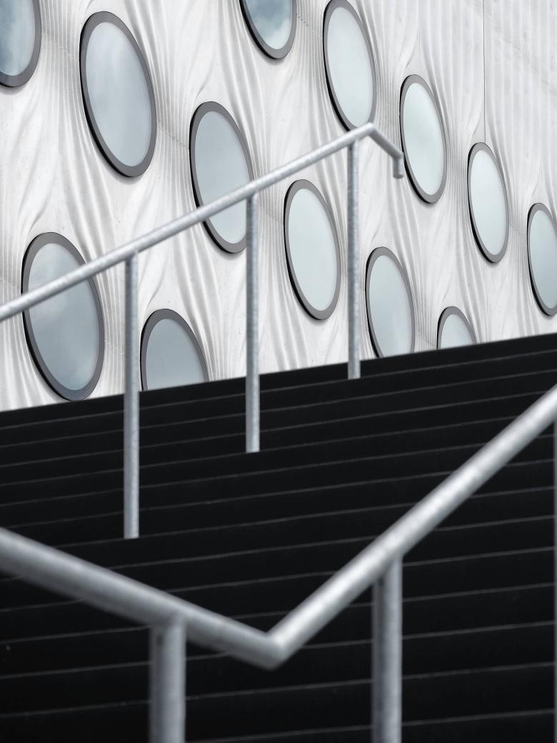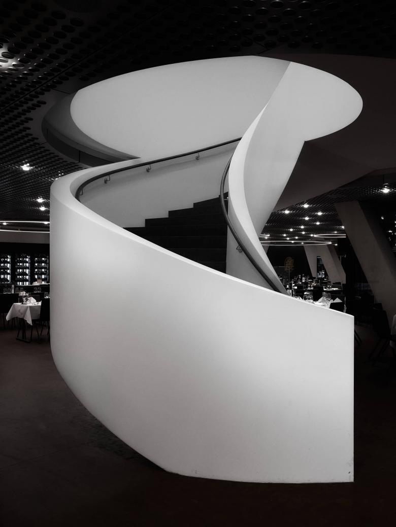 Dann öffnen sich Formen – runde Fassaden, geschwungene Treppen, Lichtkreise über dunklem Raum. Caruso St. John entwarfen eine Architektur, die Rhythmus und Atmosphäre trägt.