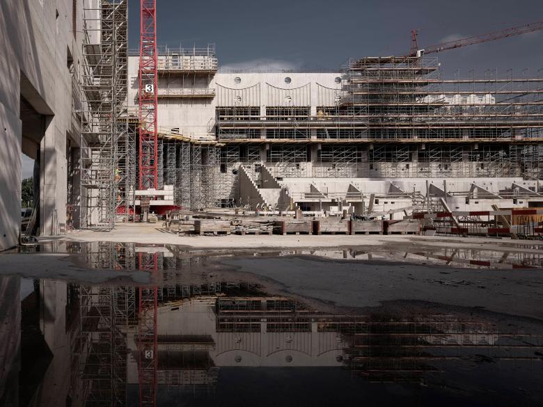 Die Serie zeigt den Weg vom rohen, staubigen Baukörper hin zur klaren Sprache der fertigen Architektur.