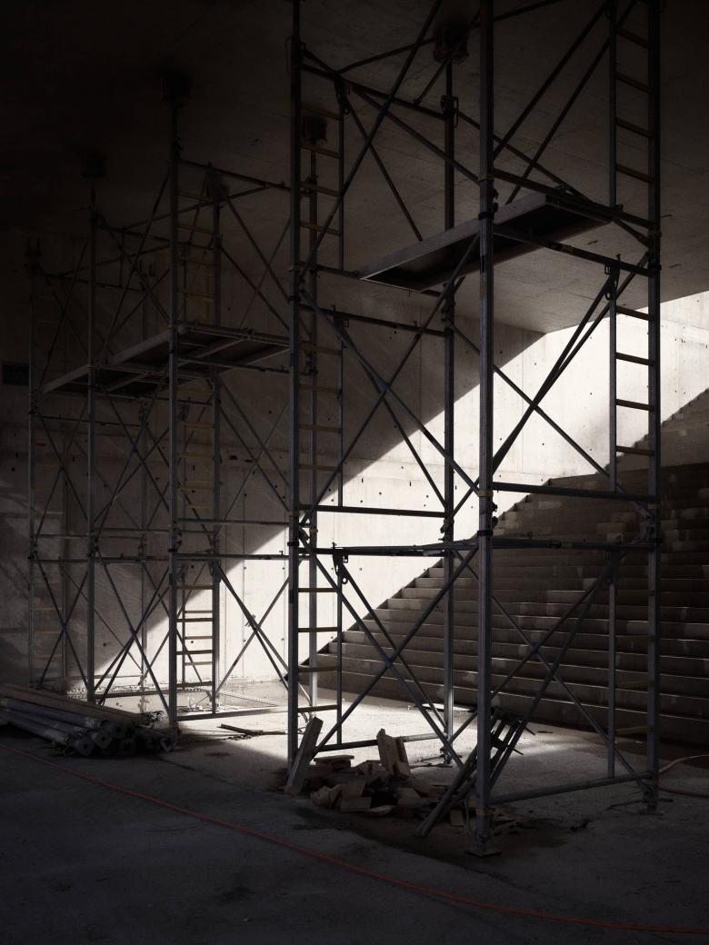 Anfangs: Beton, Schalungen, provisorische Stützen. Ein Ort voller Schwere, noch im Werden.