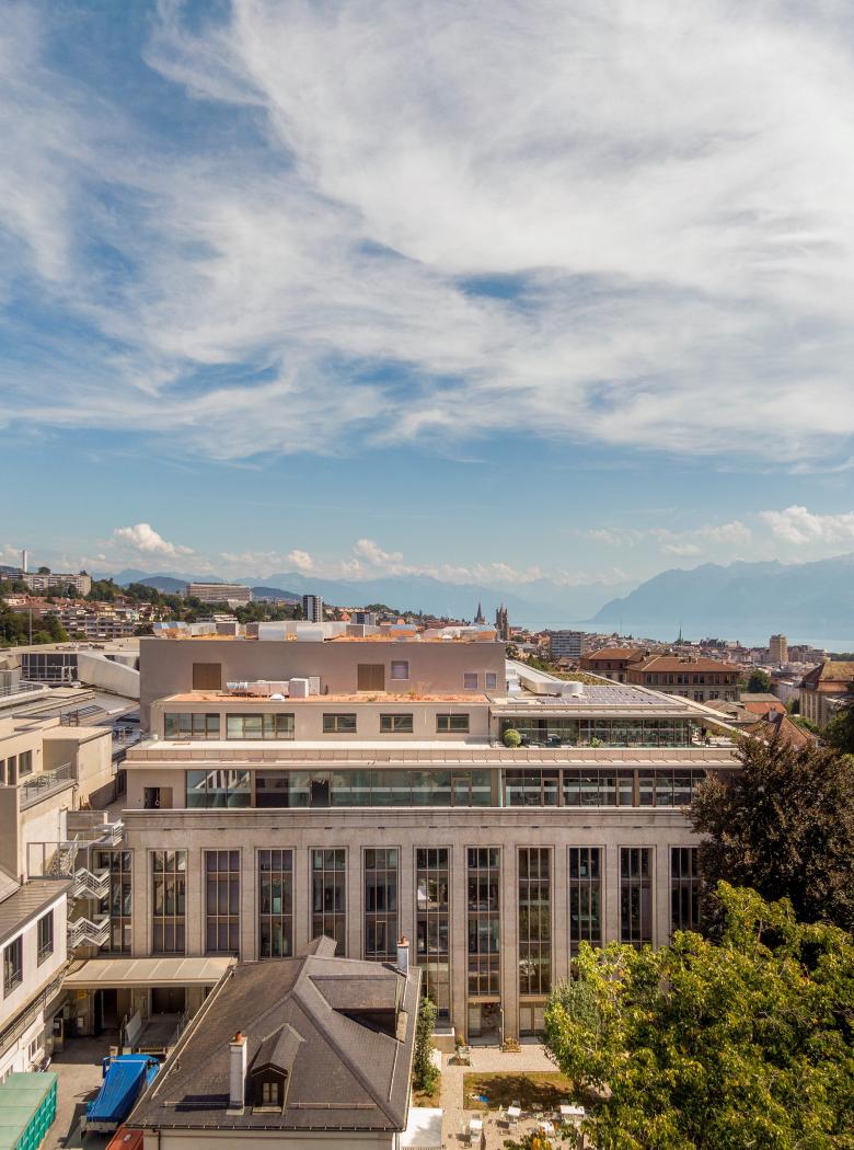 Le projet développé par RDR architectes, lauréat du MEP, propose une innovation par rapport à l’étude de faisabilité. La localisation des programmes public et administratif est inversée : les bureaux sont implantés aux 1er et 2e étages, alors que les fonctions publiques et de représentation spécifiques au TAS sont symboliquement placées en attique, leur offrant une visibilité et une situation privilégiées, bénéficiant de la vue sur le paysage lémanique, le lac et ses montagnes.