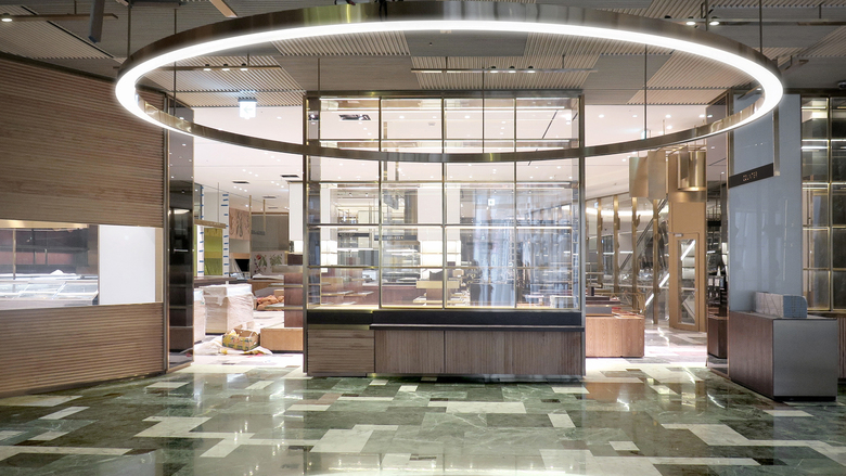 The idea of luxury is perceived through the careful selection of high quality raw materials and their wise transformation, these values are translated in the architecture through materials such as wood, marble, glass and brass embellished with details that recall the craftsmanship and care of the workings of the Peck world.