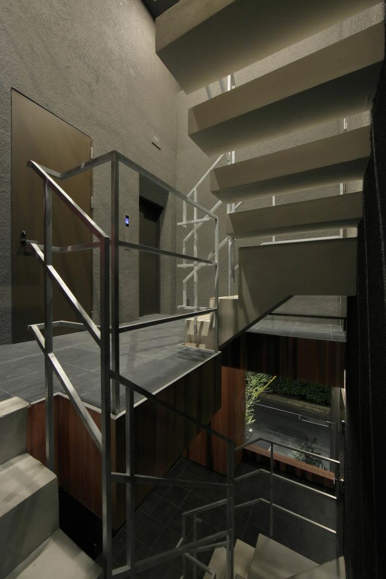 Two small gardens on the south side and north-east side, an open space along the frontal road, and communal areas connect seamlessly and serve as an interface between the house and the outside world. Apartment units respectively connect with these spaces through various openings including bay windows. Our aim was to create a residential environment where residents have views out to the surroundings and beyond and expand their minds. These apartment units also share the gardens, while careful attention was paid to protect their privacy by placing trees and bay windows accordingly to block the view through windows.