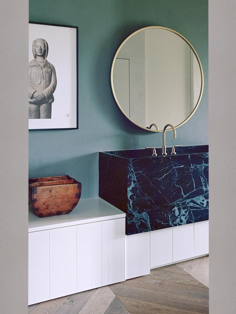 Das Haus steht als Solitär auf einer grosszügigen Wiese, welche den oberen Abschluss eines Weinberges bildet. Eine Raumabfolge aus Entrée, Halle und Aussenhof inszeniert die übergeordnete Achse Richtung Weinberg und See und bildet den Auftakt der symmetrischen Grundrissorganisation. Der Neubau besetzt ein Feld von 24 × 20 Meter und reagiert auf jede Seite mit einem Einschnitt im Volumen. Richtung Weinberg und Zürichsee erfolgt die grösste Zäsur des Volumens. Eine drei Meter tiefe Veranda vergrössert sich in der Achse des Gebäudes zu einem halbgeschlossenen Hof, in welchem ein Solitärbaum von einer abgesenkten Aussenlounge umrahmt wird. Dieser Hofraum bildet den Abschluss einer Reihe von symmetrisch ausgerichteten Repräsentationsräumen, welche die gesamte Tiefe des Hauses bereits beim Eintritt erlebbar machen. Die überhohe Halle ist das Zentrum des Hauses und wichtigster Aufenthaltsort der Familie. Von diesem Raum aus führen zwei Erschliessungsschlaufen als Rundlauf jeweils ins Ober- sowie ins Untergeschoss. Die beiden Schlaufen erschliessen die wichtigsten Räume und lassen ein unendliches Durchschreiten des Hauses zu. Die naturnahe Materialisierung aus erdigem Kratzputz wird von einem Skelett aus filigranen Glasfaserbetonelementen.