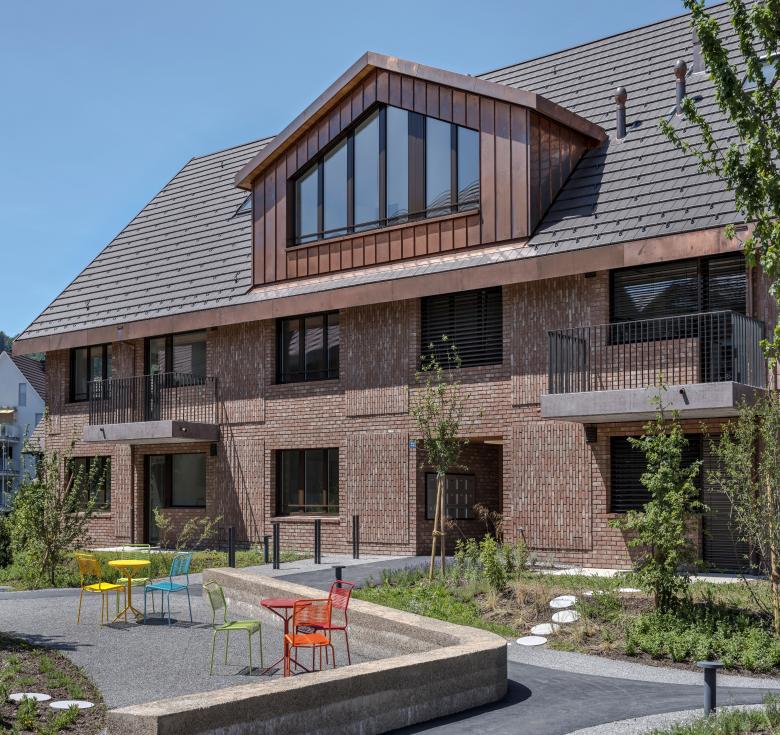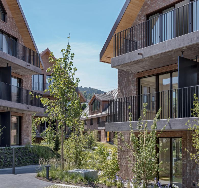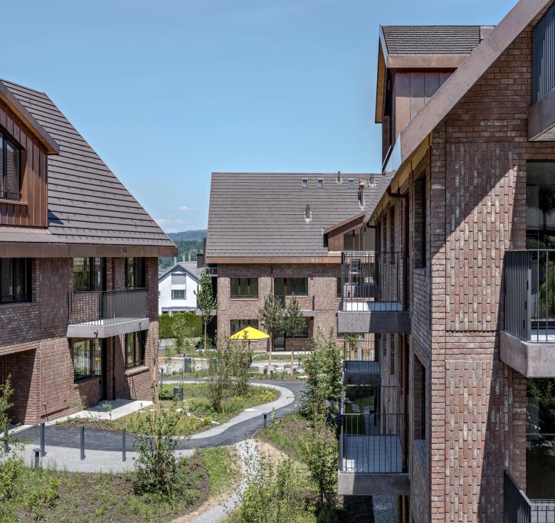 Im Zentrum von Maur, nur wenige Schritte vom Ufer des Greifensees entfernt, vereint dieses Projekt zeitgenössische Architektur mit der natürlichen Schönheit der Umgebung. Die Gebäude befinden sich in der Kernzone, auf einer zuvor unbebauten Wiese. Das Projekt besteht aus fünf Gebäuden in zwei unterschiedlichen Typen, jeweils mit vier Etagen. Das markante Design der Häuser mir Schrägdach und grossen Dachaufbauten wird durch eine doppelschalige, hinterlüftete Fassade aus roten Klinkersteinen mitgeprägt, im klassischen Läuferverband mit abgesetzten dekorativen Relieffelder gemauert. Die Gebäude mit total 63 Wohnungen gruppieren sich um einen zentralen gemeinschaftlichen offenen Platz. Die warmen, rotbraunen Ziegelfassaden harmonieren perfekt mit dem üppigen Grün der Umgebung um den Platz und den geschwungenen Wegen, die einen markanten Kontrast zur Architektur bilden.
