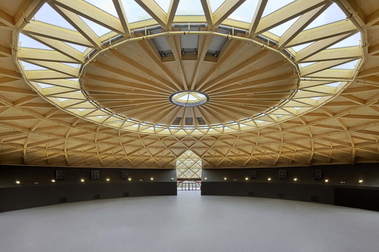 Barcelona siempre se ha caracterizado por su especial sensibilidad ciudadana y respeto hacia su pasado (cultural, histórico, arquitectónico…), pero a su vez por su contundente apuesta de futuro y vanguardia. Las Arenas es un claro ejemplo en ese sentido: la oficialización de un interesante matrimonio entre respeto arquitectónico historicista y apuesta tecnológica. A pesar de que la antigua plaza de toros, en desuso desde 1989, no poseía un elevado valor arquitectónico desde su estilo neo-mudéjar, quedaba claro que tras más de un siglo enclavada en tan imponente ubicación, se encontraba claramente grabada en la retina ciudadana, y su valor simbólico hacía conveniente su preservación. De ahí que la respuesta arquitectónica, ya desde los primeros trazos, se orientase hacia su mantenimiento, como una segunda piel exterior de la nueva edificación. Sin embargo, tal preservación comportaba una gran complejidad técnica: en primer lugar, por su deterioro físico evidente; y en segundo, por su extraño nivel, a cuatro metros de altura sobre las calles perimetrales. Pero el esfuerzo técnico valía la pena, a fin de presentar una forma cilíndrica contundente y atípica. La solución técnica para conseguir crear una nueva fachada bajo la fachada existente ha consistido en crear una gran vía perimetral de hormigón armado visto a la que se transmite el peso superior. También de forma temporal, toda la fachada se apoya sobre una corona metálica circular, dado su escaso espesor. Una vez restaurada tal fachada, pasará a ser una especie de doble piel que quedará exenta de contacto directo con la nueva edificación, estableciéndose una pasarela metálica circular, atirantada mediante muelles y tensores, que cumplirá una triple función: la de atirantamiento propiamente dicho, la de pasillo de evacuación contra incendios y la de servicios, instalaciones y aprovisionamiento de mercancías. Asimismo, la planta cuarta se destinará a pista de footing. Singularidad asegurada para una Barcelona igualmente singular. El edificio dispondrá de un enorme vacío central, a modo de hall de recepción a todas las actividades del complejo, comerciales, lúdicas y de ocio, desde donde observar la vida y efervescencia de movimiento del conjunto. Visuales cortadas, siempre aseguradas y perseguidas desde el diseño. La cubierta del edificio será otro de los grandes retos de resolución técnica y estructural, pues se independiza del resto de la edificación para remarcar su sentido de flotabilidad. Allí se dispondrá de una de las mayores cúpulas de Europa, con multitud de usos y posibilidades, así como un paseo perimetral desde el que disfrutar la magnífica vista de Barcelona, a 27 metros de altura y con más de 300 metros lineales de recorrido. Barcelona siempre ha carecido de espacios abovedados y ello remarcara la singularidad de tan sugerente coronación. El acceso a tal planta de cubierta se producirá mediante una torre exenta situada en el chaflán de las calles Gran Vía y Tarragona, posibilitando la conexión directa desde el nivel de acceso del metro (en estudio técnico). La intensa promiscuidad funcional del edificio comportará una interesante potenciación de usos del gran espacio circundante a la Fira de Barcelona, efectuando un grapado urbanístico con el Parque Joan Miró y el sólido eje de la calle Tarragona.