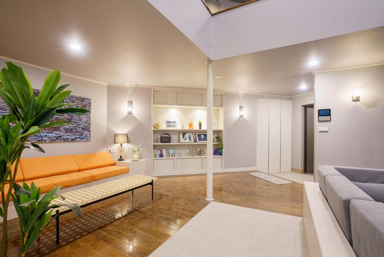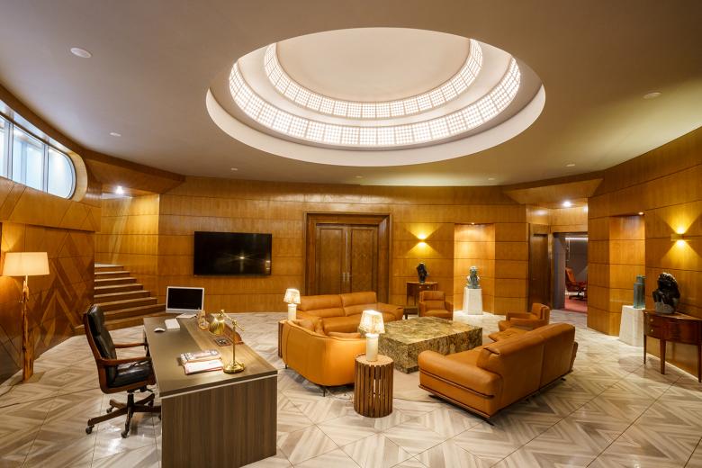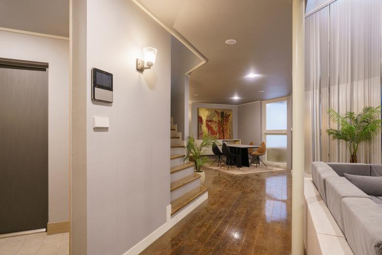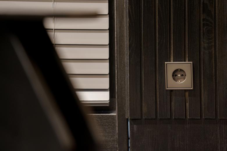 Jede der sechs zentralen Kulissen wurde bewusst inszeniert. Vom monumentalen Büro des Konzernchefs über das traditionelle Hanok bis hin zur minimalistischen Stadtwohnung ist das Interieur dabei nie bloße Kulisse, sondern Teil der Erzählstruktur. Um diese gestalterische Vielfalt auch in der technischen Ausstattung widerzuspiegeln, wurden Schalter, Steckdosen, Taster und Steuerungselemente aus der JUNG-Designlinie LS 990 verwendet, die jeweils an das architektonische Konzept des Raums angepasst wurden. So unterstreicht das Modell in Antik Messing die autoritäre Wirkung der Chefetage, während Varianten in Alpinweiß, Edelstahl oder Lichtgrau in anderen Sets auf Zurückhaltung, Eleganz oder funktionale Klarheit setzen. Auch KNX-Technologie und Raumregler wurden in die Szenografie integriert, um ein stimmiges Gesamtbild zu erzeugen.