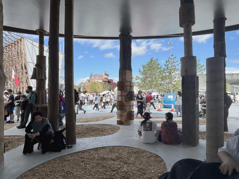 壁材には「苫編み」という技法で編んだ稲わらを取り付けた。外壁に求められるのは耐久性である。しかし苫は1年で更新されるような材料で、現代の材料とは真逆の特徴を持つ。半年という会期だからこそたどり着いた材料だ。また茅葺きの葦は取得が簡単にはできないが、稲わらは日本全国どこからでも毎年手に入るお手軽材料である。苫を今後も外壁として提案し続けるわけではないが、素材の寿命やサイクル、入手といった経路についても考えを改めるきっかけとなった。