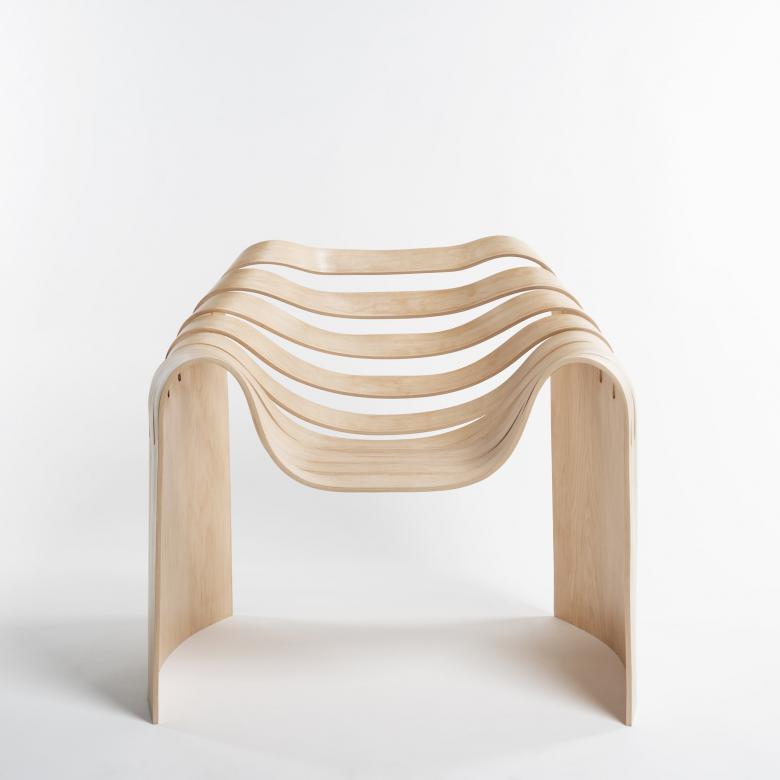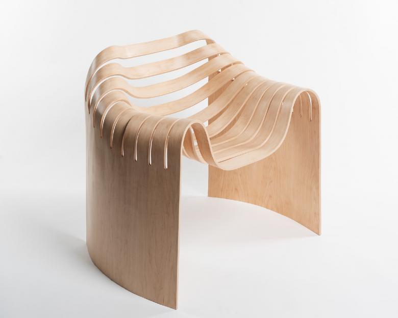 人が座っていないときは、合板でできた彫刻のようであり、人が座っているときは、座るために合板が自然にたわんだようにも見える、この椅子はそんな佇まいを漂わせています。