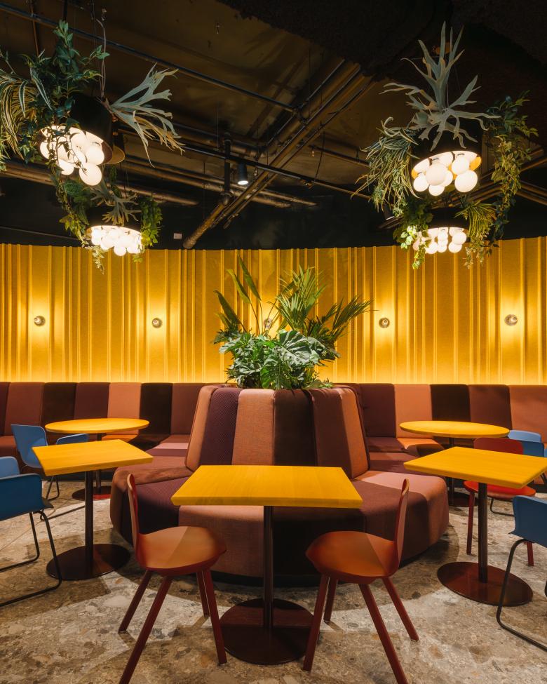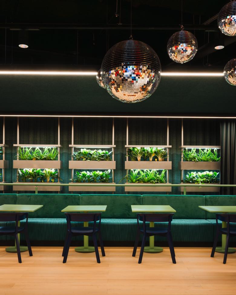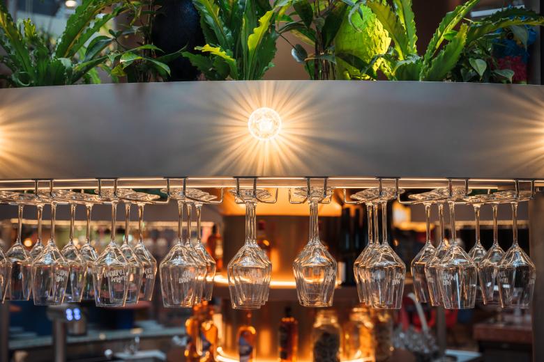 At various points in the food market and bar, there are areas for ornamental plants that require specialized lighting. To ensure that the plants are illuminated appropriately, different lighting scenes are activated automatically that maintain the atmosphere for visitors during operational hours, and promote plant growth when the market is closed at night.