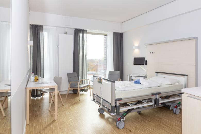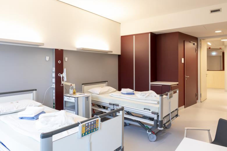 Unabhängig von der Größe des Gebäudes wird auf die Einhaltung des menschlichen Maßstabs Wert gelegt. Das funktionale Innenleben der Klinik wird mit zahlreichen informellen Treffpunkten, Warteflächen, Terrassen und unterschiedlichen Ausblicken bereichert. In den Pflegezimmern sorgen raumhohe Öffnungsflügel mit einem Geländer aus Glas für lichtdurchflutete Räume.
