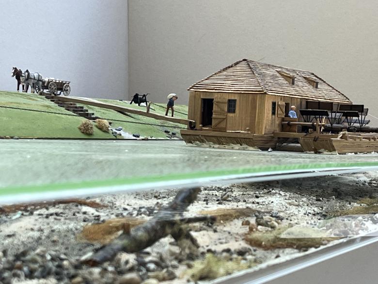 Das Modell zeigt nebst der Form auch, wie die Mühle bei unterschiedlichen Wasserständen oder im Winter bei Eisgang bewegt wurde.