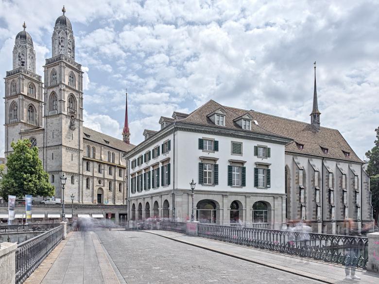 Zwischen Limmat und Limmatquai befindet sich das Helmhaus mit anschliessender Wasserkirche. Ein überregionales Baudenkmal, dessen ersten Bauten erstmals 1250/53 erwähnt wurden. Die historische Bausubstanz besteht aus massiven Steinbauten, die als Schrägdächer mit Holzkonstruktion und Biberschwanzeindeckung ausgeführt sind. Die Wasserkirche mit seiner Krypta im Untergeschoss wird weiterhin als Kirche genutzt,