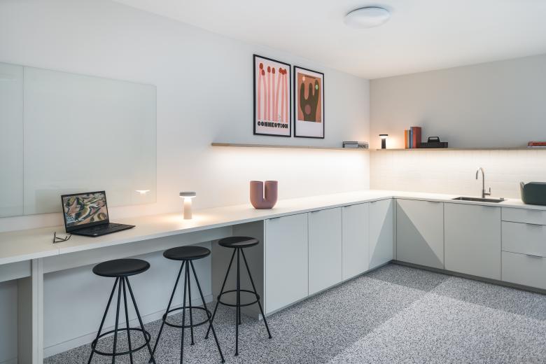 Im Rahmen des Co-Living-Konzepts The House of Co wurden an den Standorten München und Karlsruhe die Gemeinschaftsflächen neu konzipiert, um eine funktionale und ästhetisch ansprechende Raumgestaltung zu schaffen, die die Nutzung der Flächen fördert und optimiert.