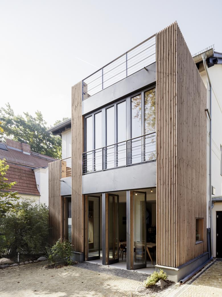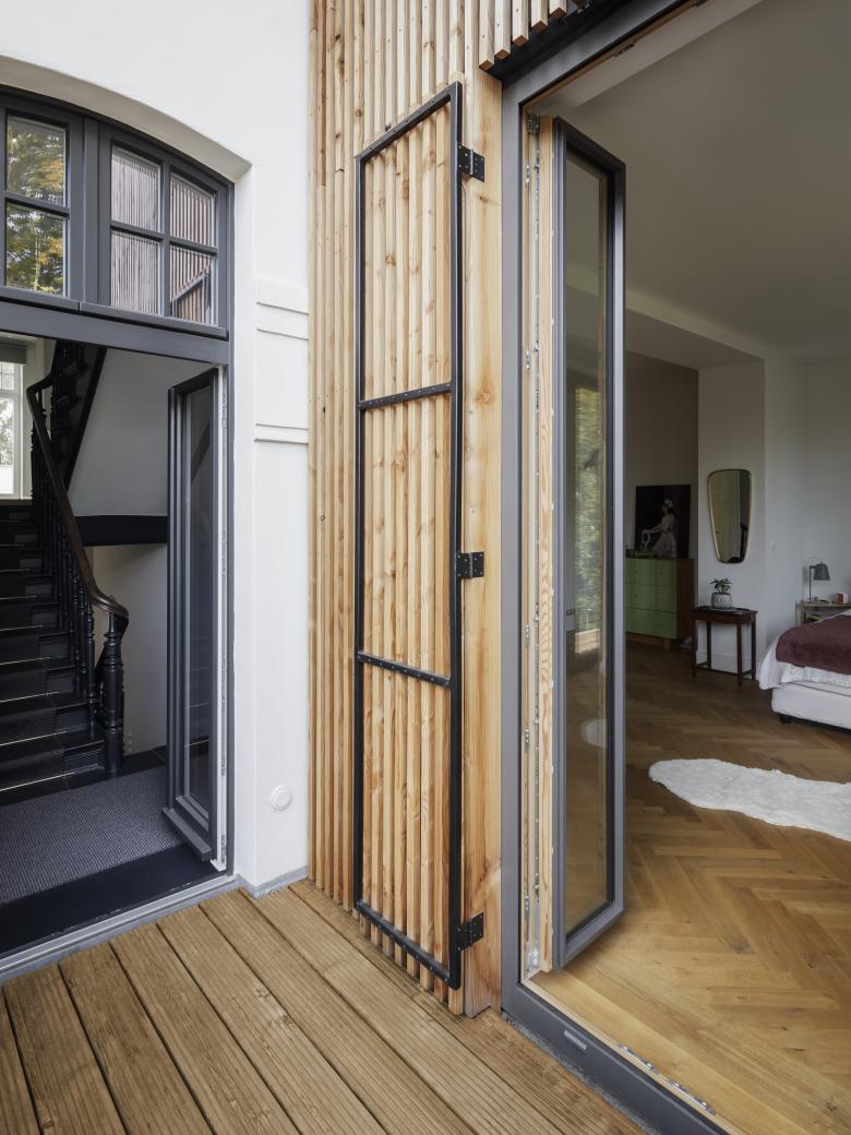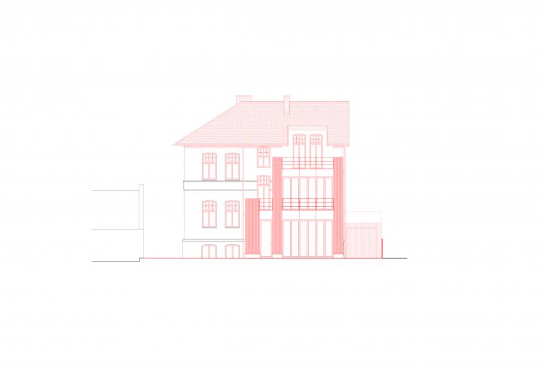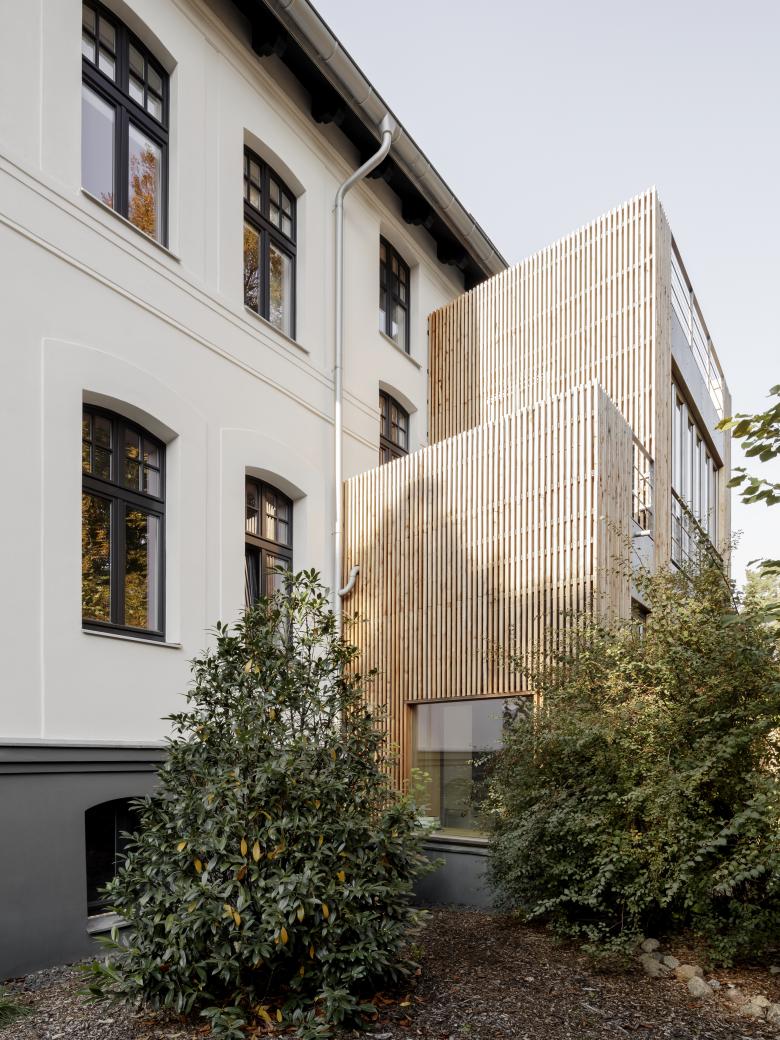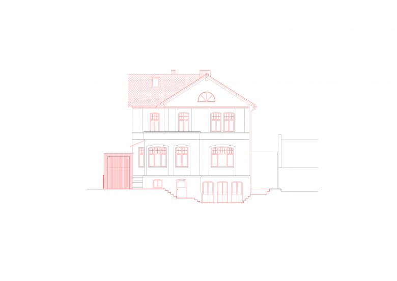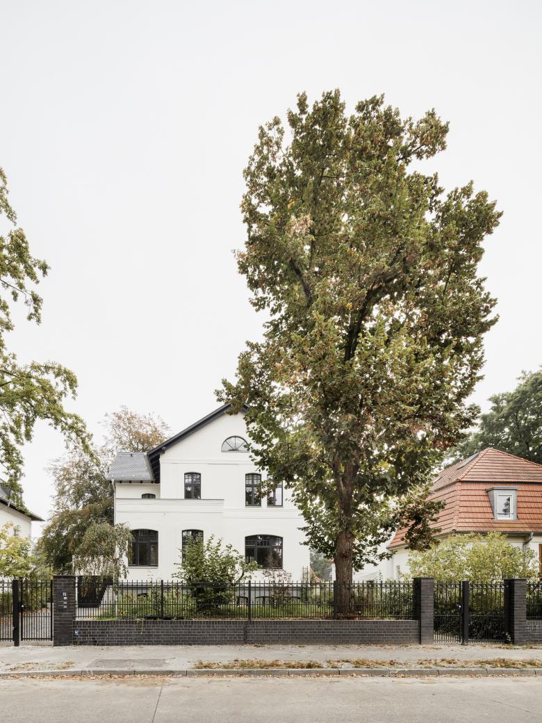 Für eine vierköpfige Familie haben wir die Vorstadt-Villa aus dem Jahr 1890 umfassend saniert und umgebaut. Die Familie wünschte sich einerseits den Charm der Altberliner Villa, mit ihren Holzböden, hohen Räumen und Türen, andererseits bestand ebenso der Wunsch nach einem modernen, lichten Raum für das gemeinsame Kochen und Essen. Der baufällige, in späteren Jahren hinzugefügte Anbau des Hauses wurde abgetragen und durch eine moderne Erweiterung ersetzt, welche in der Gartenetage die grosse Wohnküche und in der darüber liegenden Etage das Eltenschlafzimmer beherbergt. Alle Etagen im Haus wurden modernisiert und die Grundrisse teilweise umgestaltet. Der alte Dachstuhl, welcher mit giftigem Holzschutzmittel behandelt war, wurde abgetragen und durch einen neuen ersetzt. Das Dach wurde dabei etwas angehoben, um auch im Dachgeschoß Aufenthaltsqualität zu erhalten.