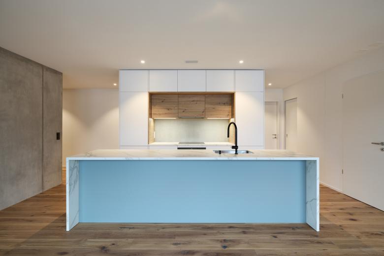 Die zwei Baukörper der Wohnüberbauung bilden einen grosszügigen Innenhof. Die Wohnungen mit modernen grosszügigen Grundrissen und Balkonen teilen sich in Miet- und Eigentumswohnungen auf. Die Grundrisse weisen Nassräume in der Gebäudemitte auf und sind klar strukturiert.