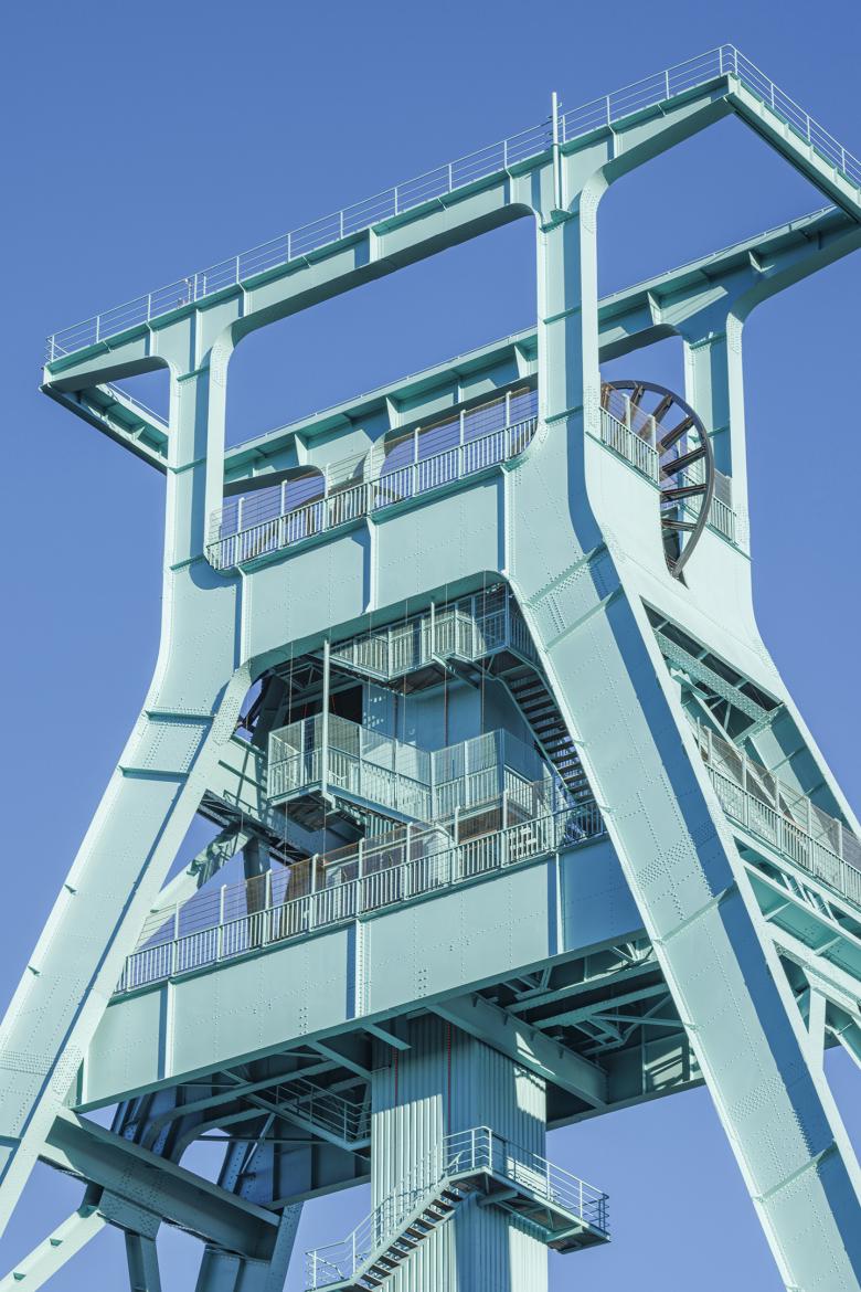 Das Wahrzeichen der Stadt Bochum – das 71,4 Meter hohe Doppelbock-Fördergerüst des Deutschen Bergbau-Museums – wurde denkmalgerecht saniert und neu beschichtet. Mit der stahlbaumäßigen Instandsetzung beauftragte die DMT-Gesellschaft für Lehre und Bildung mbH das Büro Lindner Lohse Architekten BDA in Kooperation mit Vervoorts & Schindler Architekten BDA aus Bochum.