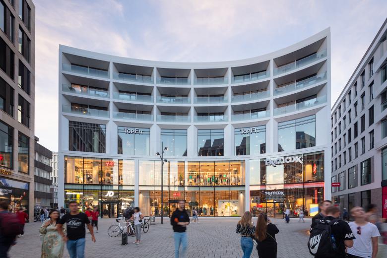 Die Sedelhöfe verbinden also als städtebauliche Brücke bislang disparate Areale zu einem integrierten, übergeordneten Innenstadtquartier. Ihre eigentliche Identität besteht aber vor allem darin, selbst ein organisches Ganzes und ein eigenständiges Quartier zu sein. Drei der vier fünfstöckigen Gebäude des Ensembles bieten moderne Büroflächen; die unteren Geschosse der Anlage werden durch Einzelhandelsflächen mit großzügigen Fensterfronten geprägt. In den oberen Geschossen des Zentralgebäudes (3.-5. OG) sind 112 Wohnungen entstanden, die sich um eine weitläufige Gartenlandschaft ordnen. Unterschiedlich gestaltete Fassaden der Einzelgebäude, mit Naturstein oder Metall, stützen optisch die Idee eines dynamisch geprägten Quartiers. Nahezu das gesamte Baufeld ist mit dreistöckigen Parkflächen unterkellert (2.-4. UG).
