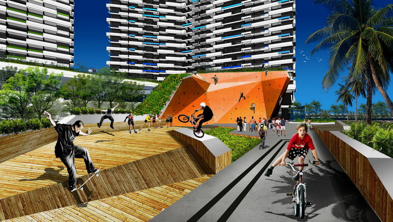 本設計很好的詮釋了規劃、建築、景觀一體化的概念,三者融為一體,密不可分。景觀既是建築的立面,又是規劃裡面的有機組成部分,這樣將能有效的達到景觀面積的最大化,不同高度的垂直綠化,裙樓景觀和屋頂花園,構建大型的生態社區。