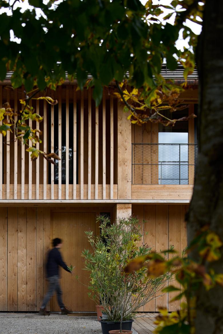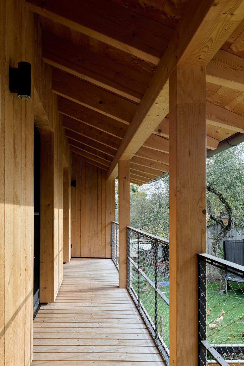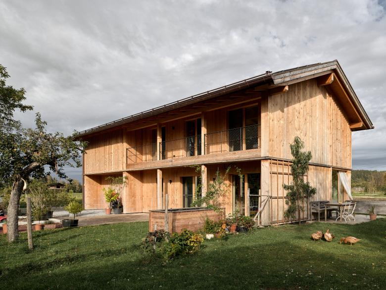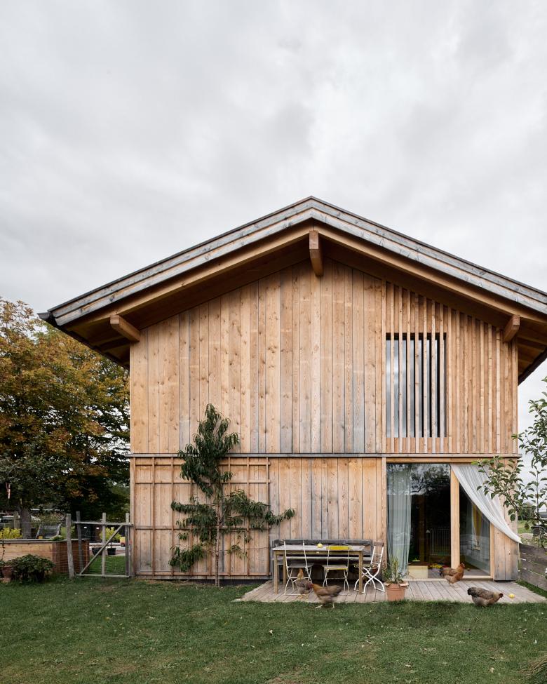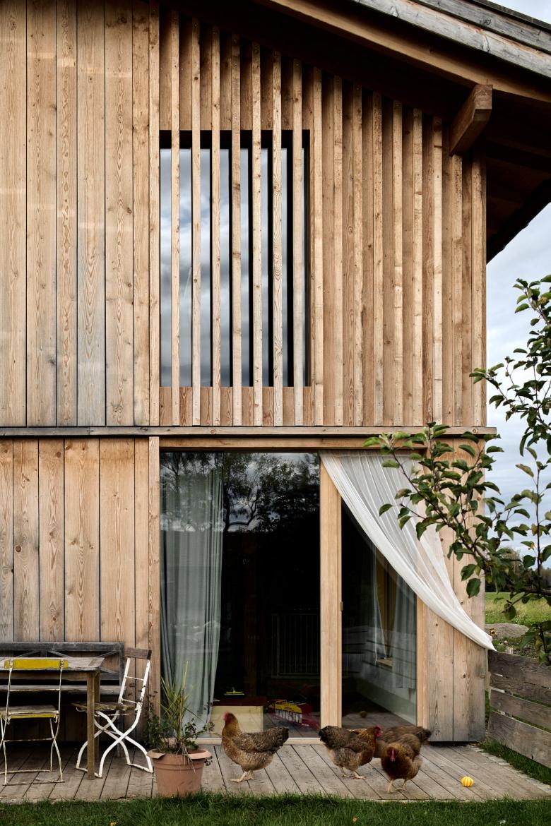 'Barn House' was inspired by the local farm building vernacular in Bavaria. This family home is honest and authentic, sustainably built from wood from the homeowners' forest. It was important to me to include the surrounding farm context in the photographic documentation, as it has a significant influence on the design, including capturing the chickens roaming wild during the shoot.