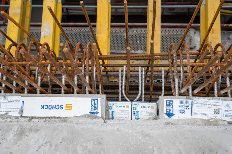 In den Eckbereichen wurden die Balkone überwiegend in Ortbeton ausgeführt und mit verschiedenen Typen Schöck Isokorb XT Q angeschlossen. Zusätzlicher Knackpunkt beim Einbau über Eck: Die 100 mm langen Querkraftstäbe des Isokorb durften sich nicht treffen und mussten in die Bewehrung passen. Das gelang – wie die anderen Herausforderungen dieses Projekts – durch eine detaillierte Planung im Vorfeld und eine gute Zusammenarbeit aller Beteiligten.