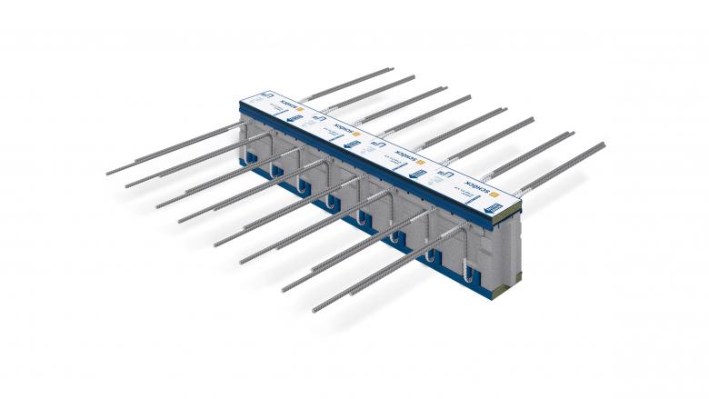 Eine Besonderheit bei der Planung und beim Einbau bildeten die Treppenhausbereiche, in denen hinter den Fluchtbalkonen keine Decken, sondern Lufträume ausgebildet waren. „Zur Lastableitung mussten wir daher die Balkone in die aufgehenden Wände der Treppenhäuser hängen“, erklärt Harald Kurz, Oberpolier bei Wolff & Müller. Die Zug- und Querstäbe des Isokorb XT Typ K und Typ Q wurden dafür nach oben in die aufgehenden Betonwände geführt.