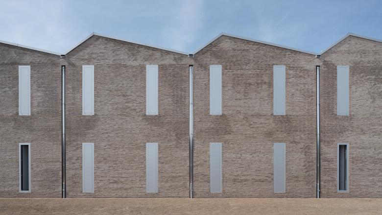 Städtebaulich reiht sich der langgestreckte Zweckbau auf dem ehemaligen Gelände des Ausbesserungswerks der Reichsbahn in die Struktur der angrenzenden Gewerbebauten ein. Asymmetrische Giebeldächer und schmale Entrauchungspaneele rhythmisieren die Ziegelfassade des Depots und geben ihm eine einprägsame Gestalt. Zur Straße hin wechselt die Fassade in eine helle, vertikal strukturierte Metallverkleidung mit einem Rahmenelement im Erdgeschoss, hinter dem sich Eingangs- und Anlieferungsbereich und Arbeitsräume befinden. Fassadenschwerter greifen die vertikale Faltung der Stirnfassade auf und führen die Gestaltungselemente der Fassade zu einem Gesamtbild zusammen. Der am Passivhausstandard orientierte Betonskelettbau ist auf einen minimierten Energie- und Wartungsaufwand ausgelegt. Massive Decken und je nach Bereich 30 - 50 cm dicke Kalksandsteinausfachungen stellen ein stabiles Temperatur- und Feuchtigkeitsniveau sicher.