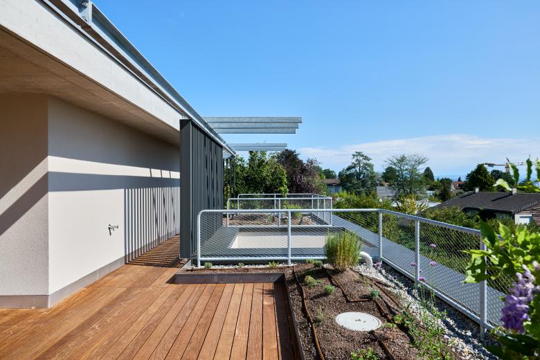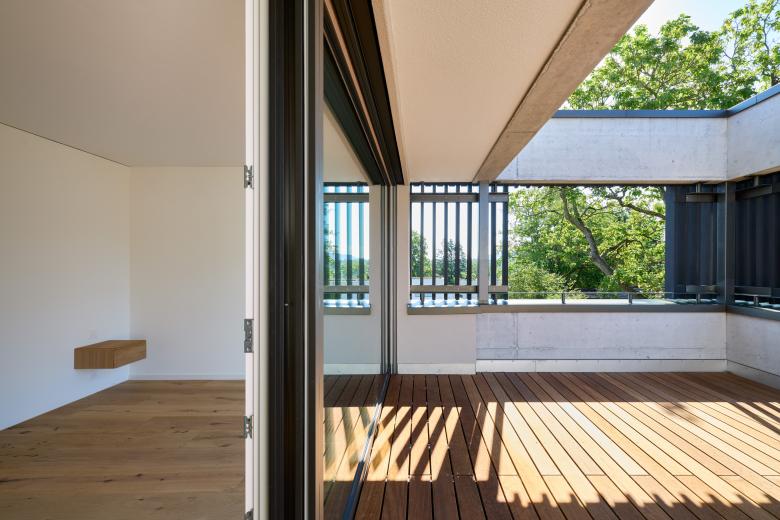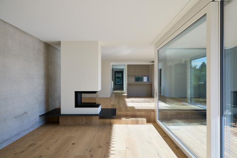 Zusammen und doch getrennt. In Binningen, zwischen Punktbauten und Weideland mit Kirschbäumen, steht ein Haus für zwei Schwestern und ihre Familien. Die besondere Lage prägte das Konzept: Es sollte ein gemeinsames Zusammenleben ermöglichen, dabei aber auch Raum für das Eigene lassen.