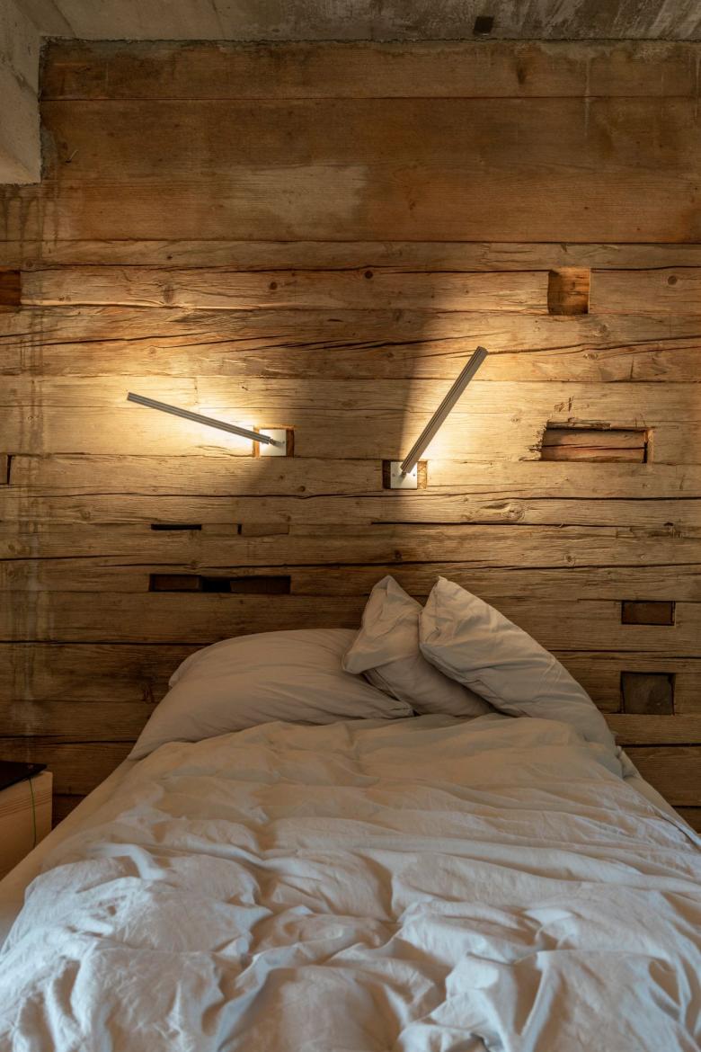 Neue Betonbarren umborden das Haus. Sie stützen das Holz. Sie machen das Haus bewohnbar.