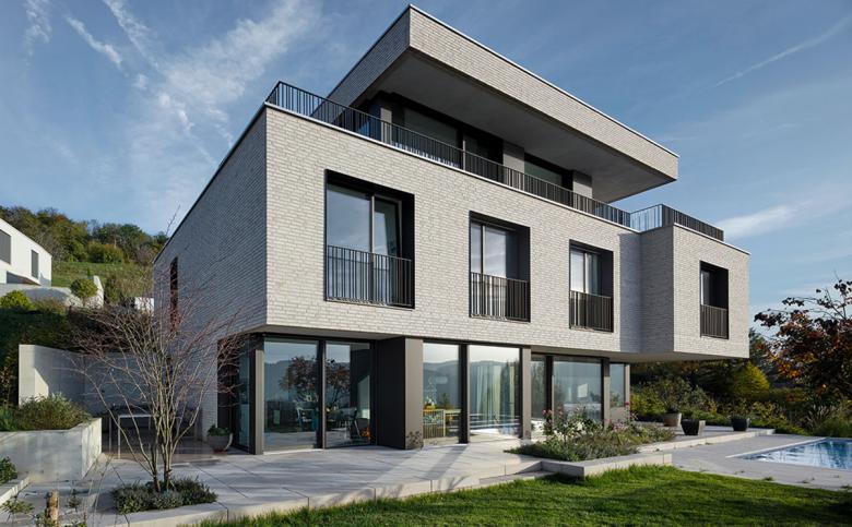 Die eindrückliche Aussicht in die Rheinebene zu den Vogesen und das Ergolztal bestimmen die Ausrichtung der Räume. Sockel-, Erdgeschoss und Attika können dank der Neigung des Hangs davon profitieren. Die drei Geschosse sind durch eine durchlaufende Eingangshalle miteinander verbunden.