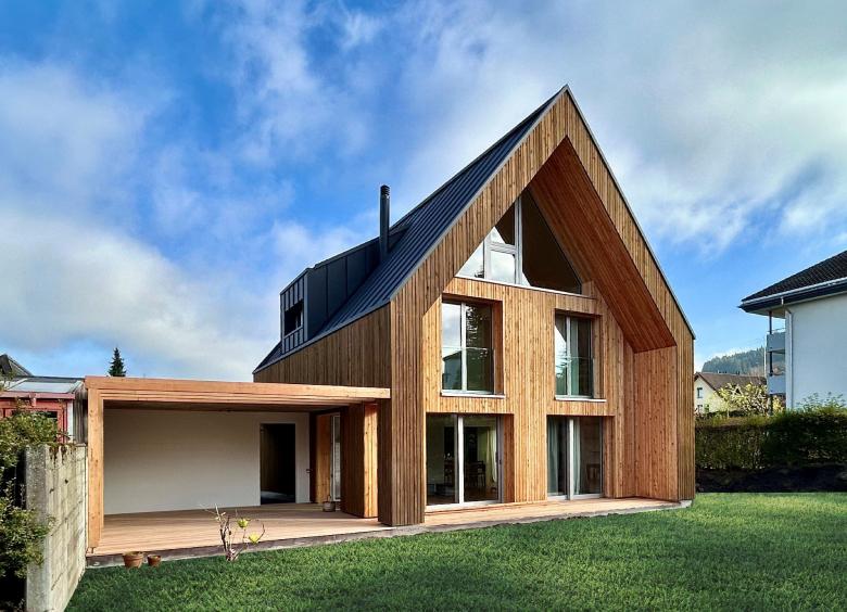 Die Bauherrschaft legt grossen Wert auf Nachhaltigkeit. Die natürliche und nachhaltige Materialisierung in Holz gibt dem Gebäude seinen eigenen, ausdrucksstarken Charakter mit viel wohnlichem Charme, zudem wird mit dem Ersatz der bestehenden Ölheizung durch eine Erdsondenwärmepumpe und der integrierten Photovoltaikanlage eine effiziente und umweltfreundliche Energieerzeugung gewährleistet.