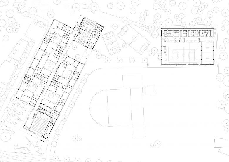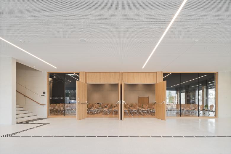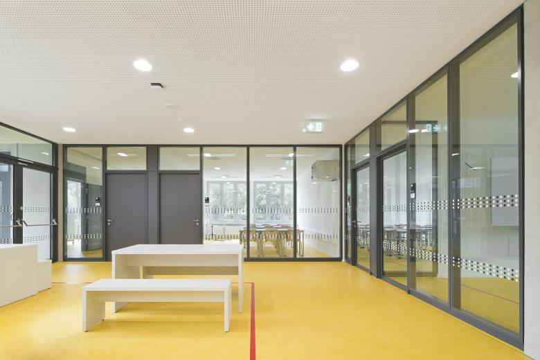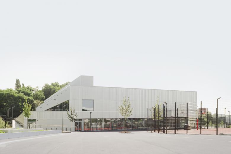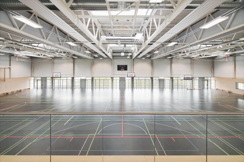 Die neue sechszügige Gesamtschule Köln Lindenthal / Ehrenfeld für rund 1.300 Schüler:innen inklusive einer Drei- und einer Einfeldsporthalle wurde im Rahmen eines ÖPP-Verfahren umgesetzt. Die besondere Herausforderung für den Ent-wurf war, neben der Situierung der zwei großen Volumen auf dem Y-förmigen Grundstück, die Berücksichtigung der Konstruktionsmaße des Systemproduzenten.