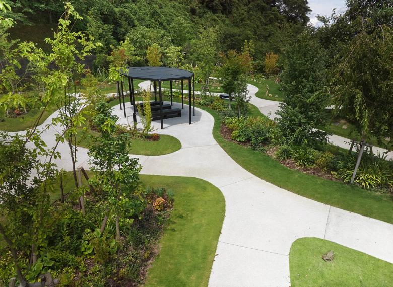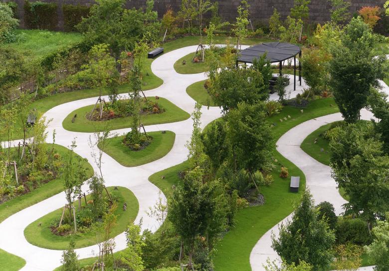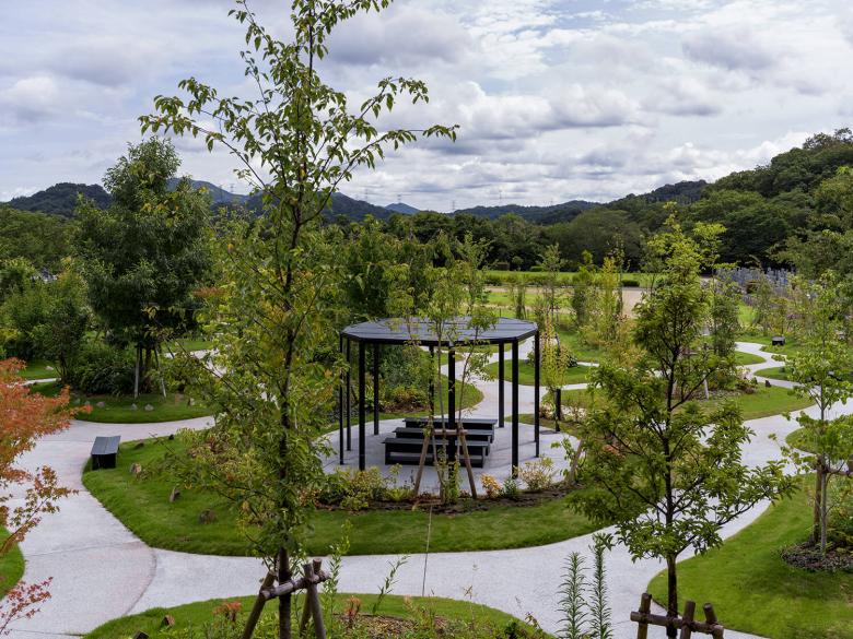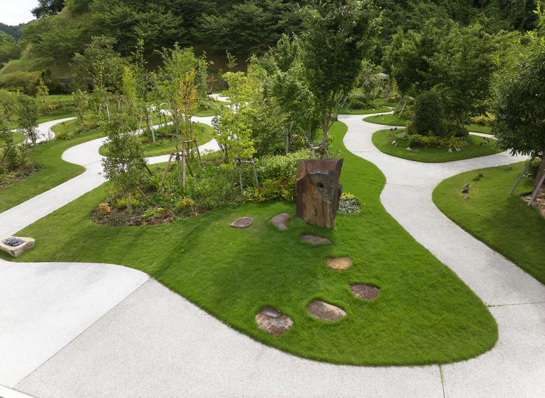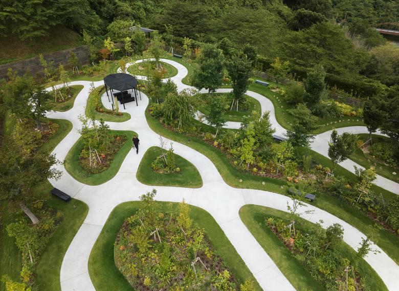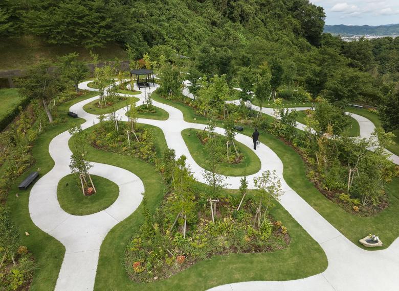 この墓所では、散策によって他者と交差し、視線の交わりを通して緩やかにつながる空間のなかで、記憶や感情と自然に向き合う機会を創出している。自然の四季に包まれた風景は訪れる人の心を支え、身体の緊張をほぐし、日常とは異なる時間をもたらす。墓所を閉ざされた個人の場所とせず、利用者以外の訪問者も受け入れる開かれた風景として構成し、公共的空間への拡張を意図している。今後もこの設計思想を通して、祈りと自然が重なり合う新しい弔いの風景を社会に提示していく。