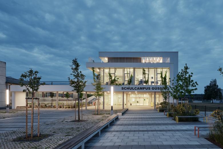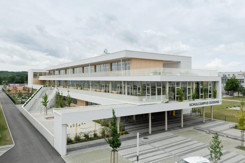 Licht – Luft – Sonne … und … Burg Güssing sind quasi die Ausgangsparameter für die Entwicklung des Schulcampus VS+ASO+ZMS im Zentrum der ausgedehnten Schulbau- und Sportanlagen entlang der Schulstraße.