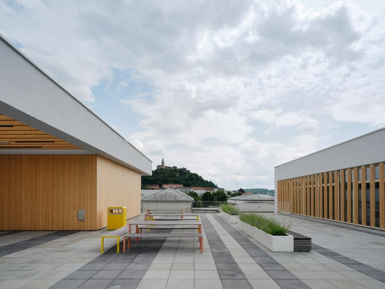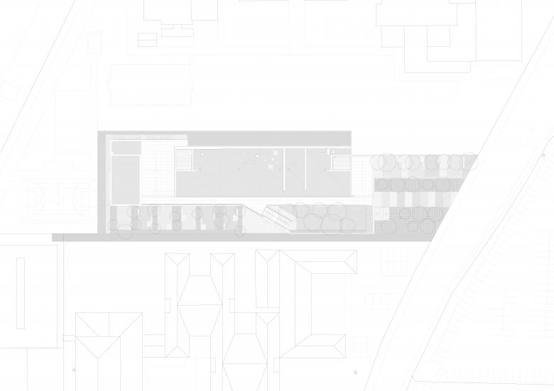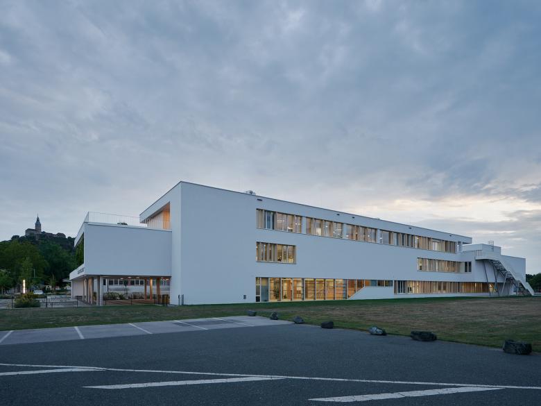 • Mit den großzügigen Öffnungen entlang der gesamten Südfassade erhält das Gebäude eine klare Orientierung - mit der Burg als Bezugspunkt - zum Zentrum der Stadt.