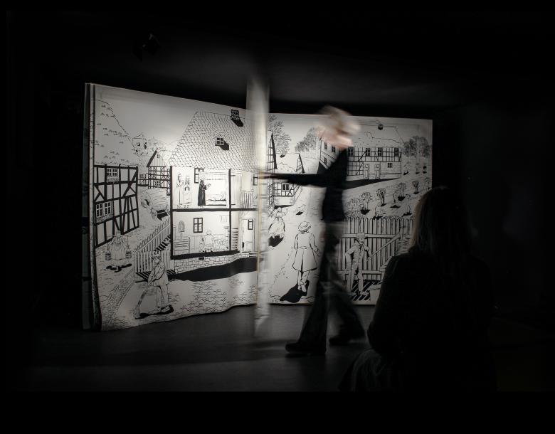 Mit dieser Neukonzeption für Haus Heck brechen wir die traditionellen Präsentationsformen im Freilichtmuseum auf und gehen neue Wege der Vermittlung. Es gibt keine klassische, historische Einrichtung, sondern einen Erlebnis- und Handlungsraum, der auf kulissenhaften Inszenierungen und einer dramaturgischen Aufbereitung der Inhalte basiert.