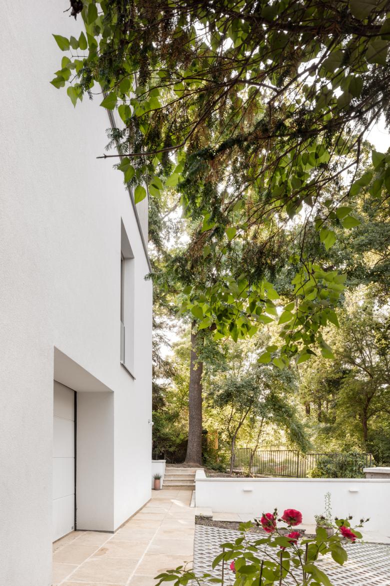 Beim vorliegenden Projekt handelt es sich um den Umbau eines Gebäudes aus dem Jahr 1975. Der Bestand war geprägt von einer Vielzahl an funktional und räumlich schwierigen Situationen. Der Zugang erfolgte in einen dunklen und niedrigen Raum; die interne Vertikalerschließung befand sich in einem am Rand liegenden Stiegenhaus; im Inneren war eine Vielzahl an kleinen unangenehmen Räumen; die Verbindung zum Garten war nicht ideal; und die räumliche Situation im Obergeschoß war ebenfalls nicht zufriedenstellend;