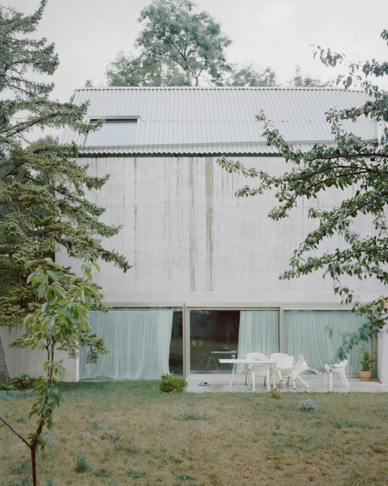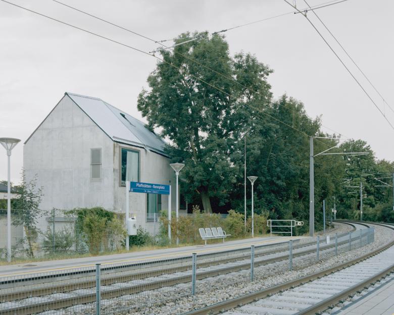 Zwischen den Gleisen der Badener Bahn und den alten Mauern einer Fabrikantenvilla befindet sich ein Grundstück, das sich dem Lärm entzieht, ohne sich zu verstecken. An seinem Ende steht das Haus, das mit klarer Geste gesetzt wurde, als würde es die Schwelle zwischen Stadt und Garten, Bewegung und Ruhe markieren.