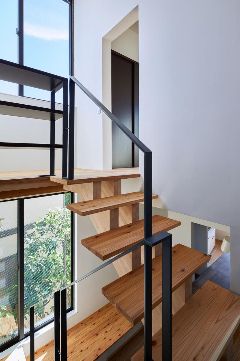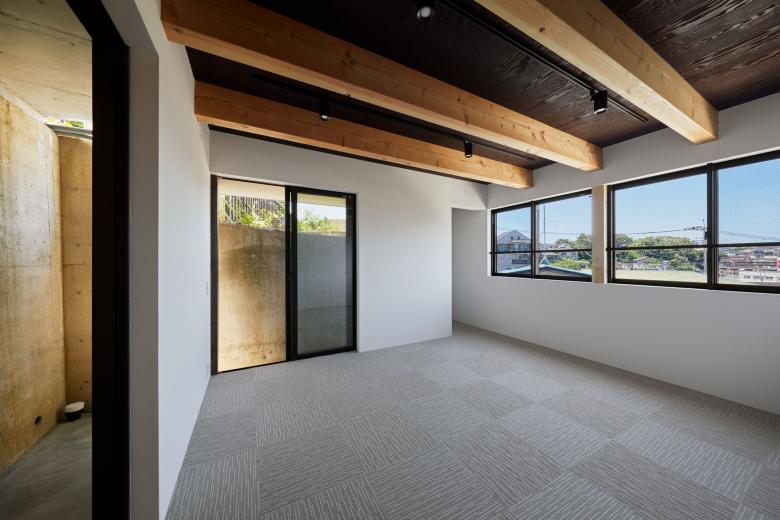 着工後、隣地擁壁の基礎が計画建物内に干渉することが発覚した際にもその基礎を避けるように平面を変更し、結果として擁壁に囲まれた不思議な半外部空間の先に隣地の緑が見え、眺望が広がる変化の富んだ地下空間が生まれた。