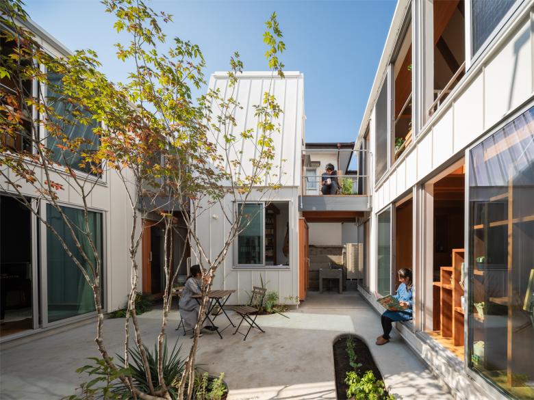 Thus, the design included four separate buildings: one for each creative activity and another for communal spaces such as the living room, dining area, kitchen, bedroom, and utility areas. These buildings encircle a central courtyard, which serves as a flexible space where each family member can freely engage in their activities—whether it be the daughter studying, the husband writing scripts, or the wife working on illustrations.