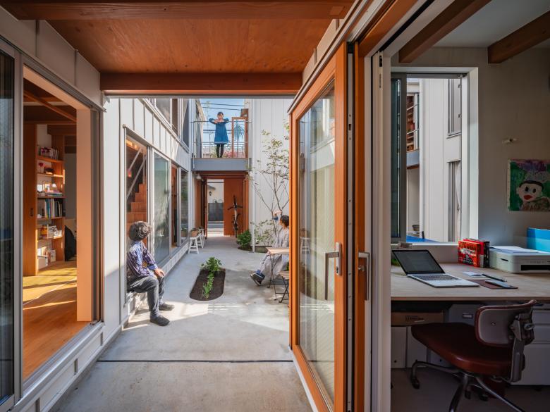 While it may not be feasible for one architect to design an entire village, the intent to achieve a village-like quality within this home is evident. The family now participates in community activities, forming a local group called "Keizan Kai," which organizes events such as flea markets in front of their home.