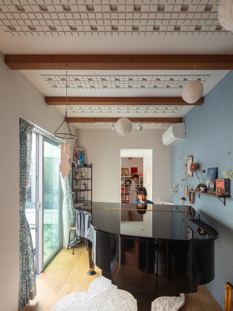 In a family of three, each member is engaged in creative activities: the husband is a screenwriter, the wife is an illustrator, and the daughter plays the piano daily for contests and concerts. When designing their home, the concept was to create individual buildings suited to each person's creative pursuits, rather than traditional rooms within a house.