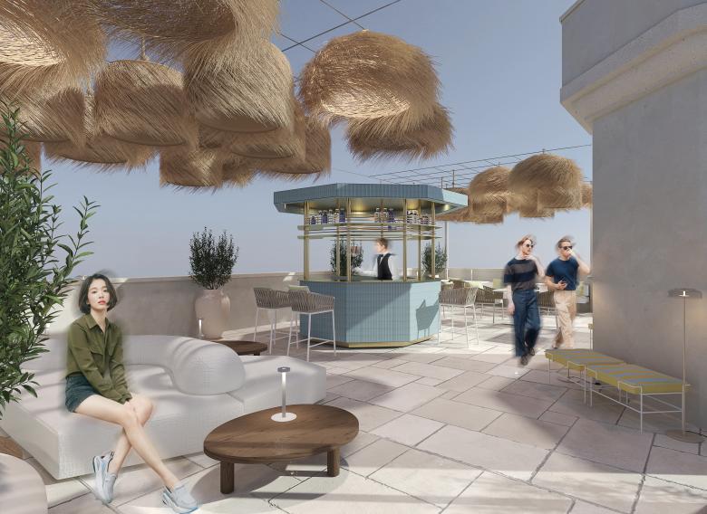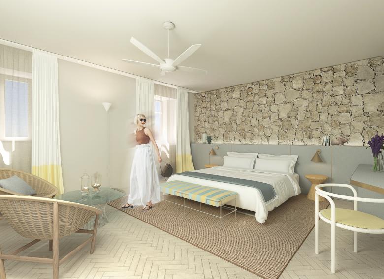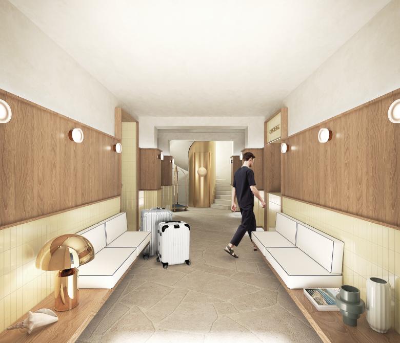 The interior design concept focuses on maintaining the historic structure’s authenticity while introducing modern architectural elements.