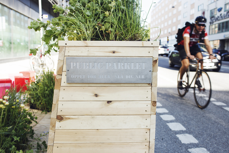Both passers-by and workers from surrounding buildings heavily used the parklet on Katarinavägen. Climate-smart micro parks combine sustainable storm water management, the creation of public space, and high biodiversity. Even small pilot projects can reduce flooding, act as impromptu meeting places along our streets, and add ecosystem services to our cities. Green retrofits increase social-ecological resilience, and cities stand to gain financially as a result.