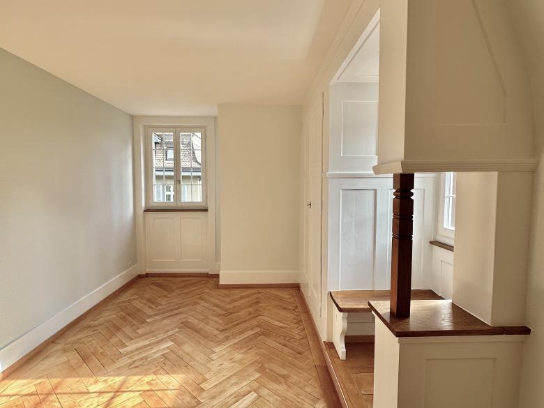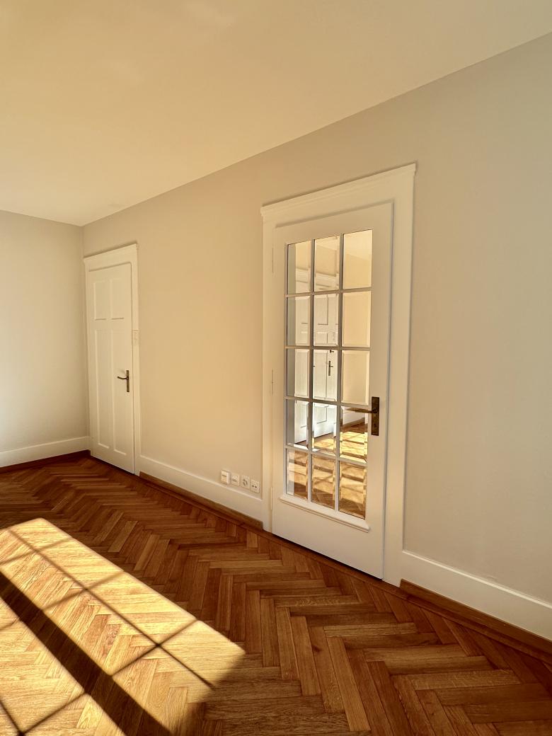 Die Innenrenovierung dieses Einfamilienhauses in Bern bewahrt den historischen Charme und verbindet ihn mit modernen Akzenten. Der geschliffene Originalparkett verleiht dem Raum zeitlose Eleganz, während die neue, puristisch gestaltete Küche einen spannungsvollen Kontrast schafft. Mehrere hochwertig renovierte Bäder sowie gezielt eingesetzte Farbakzente bringen Dynamik und Frische in das Wohnkonzept. Tradition und modernes Design vereinen sich harmonisch in dieser renovierten Villa in Bern.