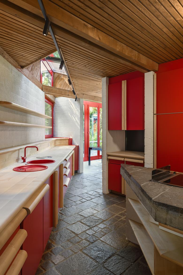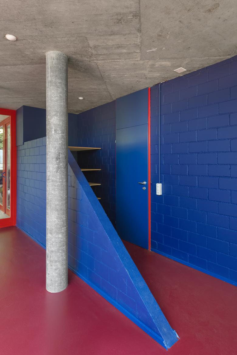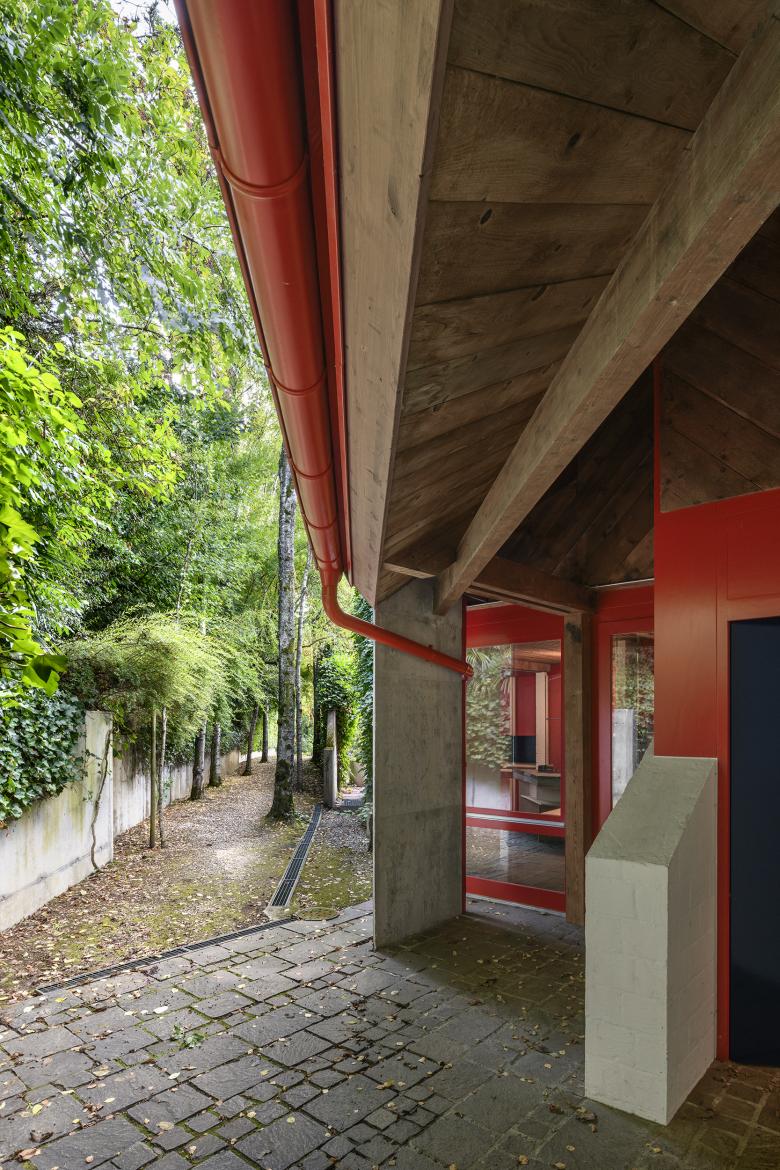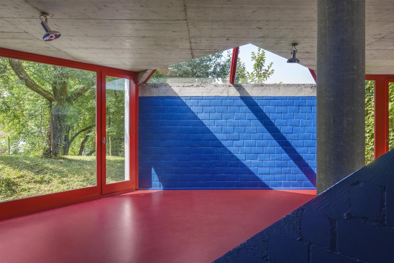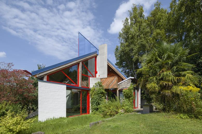 Das Haus Gmür in Riehen entstand 1979 als ihr Erstlingswerk und privates Wohnhaus. In einem beschaulichen Wohnquartier zurückversetzt hinter einem privaten Zufahrtsweg versteckt sich der experimentelle Wohnbau aus geometrischem Raster, sichtbarer Konstruktion, ehrlicher Materialität und mutiger Farbe ganz im Grünen.