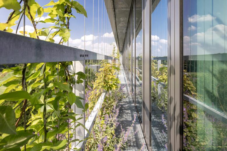 Das Gebäude folgt der Methode des SSP-Planungslabels „GreytoGreen“ und setzt die Nachhaltigkeitsstrategien Effizienz (Energie- und Ressourcen), Konsistenz (Cradle to Cradle) und Suffizienz (Vermeidung unnötiger Baustoffe und Elemente) eindrücklich um.
