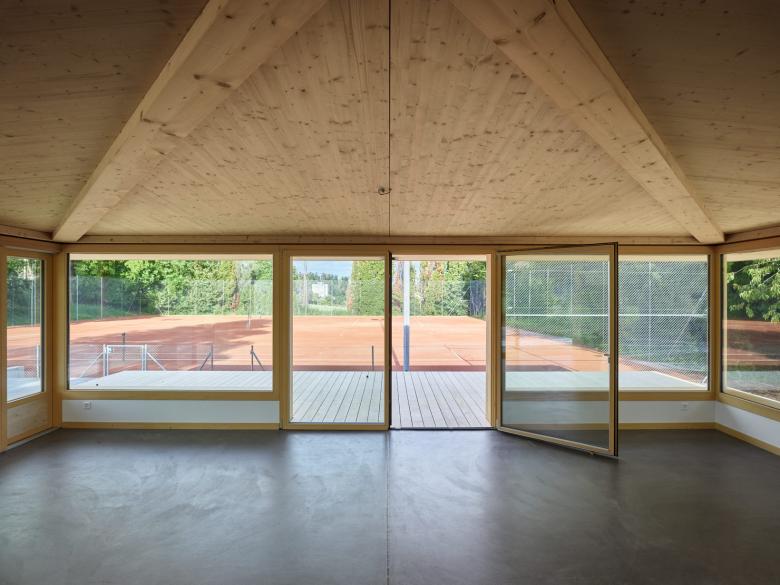Mehr als ein Gebäude ist das Clubhaus ein Ort der Verbindung – zwischen Menschen, Sport und Landschaft. Die Architektur setzt auf Klarheit und Einfachheit und nutzt Holz als Ausdruck von Struktur und Stimmung. Zurückhaltend und zugleich sinnlich begleitet das Haus die gemeinsamen Rhythmen von Tennis, Begegnung und Wandel der Jahreszeiten.