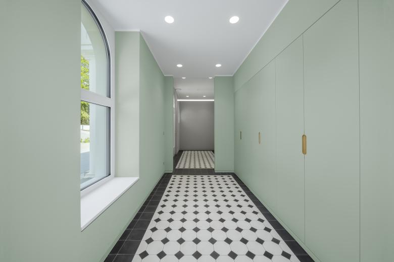 In den Innenräumen wurde Wert auf haptische Oberflächen und ein harmonisches Zusammenspiel von Materialität und Farbe gelegt.