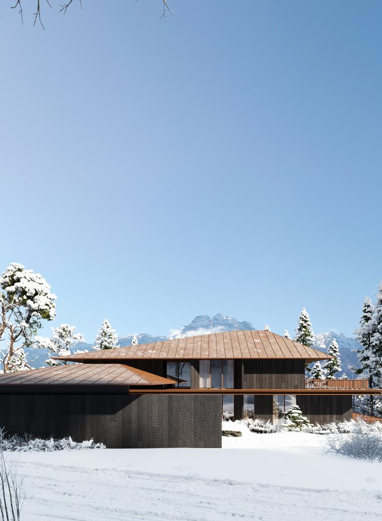 Passive strategies such as solar orientation, thermal mass, and natural ventilation are embedded in the design, reducing energy use without compromising aesthetics. The Lodge demonstrates a contextual, performance-driven approach to mountain architecture, merging lifestyle, environment, and expressive form.
