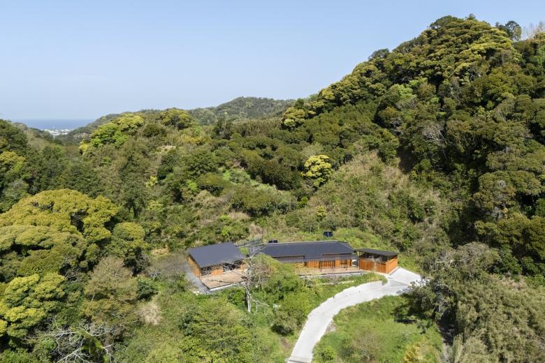 居住空間となるリトリートエリアは、門から離れた丘の上に位置し、道路や周辺から隔絶された、物理的にも心理的にも安心できる環境とした。